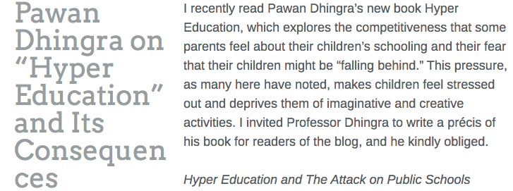 DIANE RAVITCH blog invitation: “Pawan Dhingra on ‘Hyper Education’ and Its Consequences” (June 16, 2020)